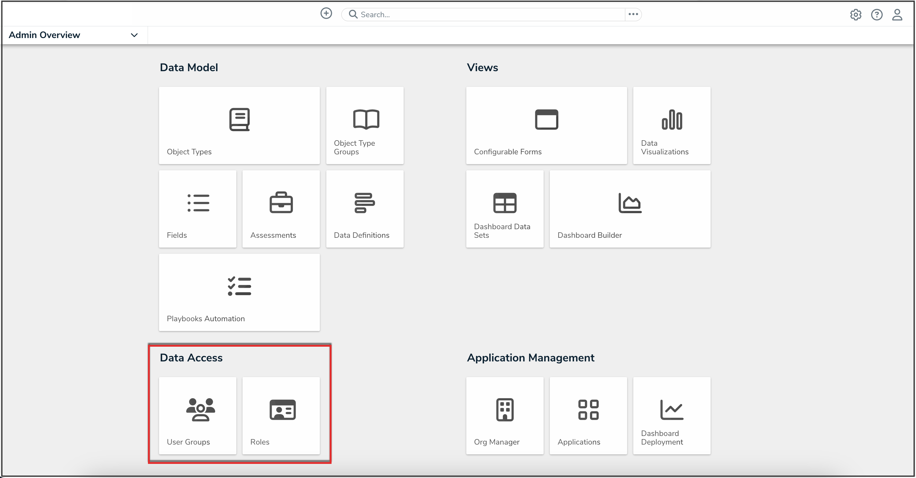 In the Admin Overview screen, the People section has been renamed to the Data Access section.