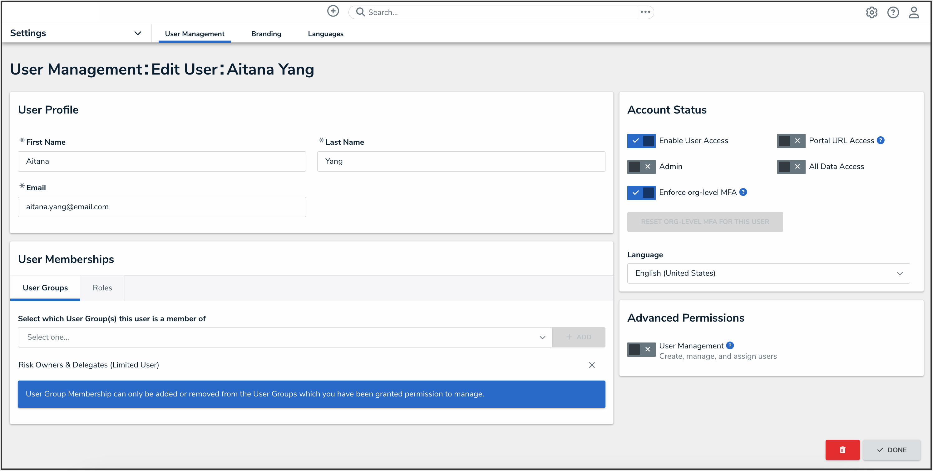 Additionally, the Change User Information button will now only display on the User Profile card when the value in the First Name, Last Name, or Email field is changed.
