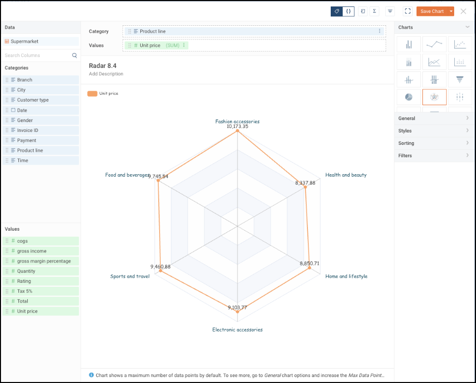 Please refer to the Adding a Radar Chart to a Dashboard article for further information on the Radar Chart.