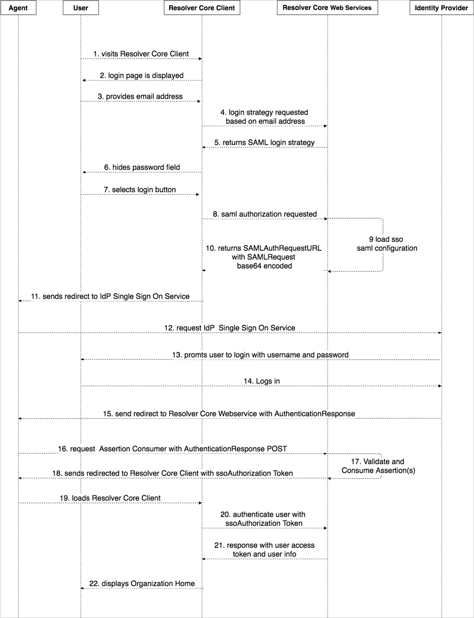 - IdP sends a redirect to the Agent with the SAMLResponse.