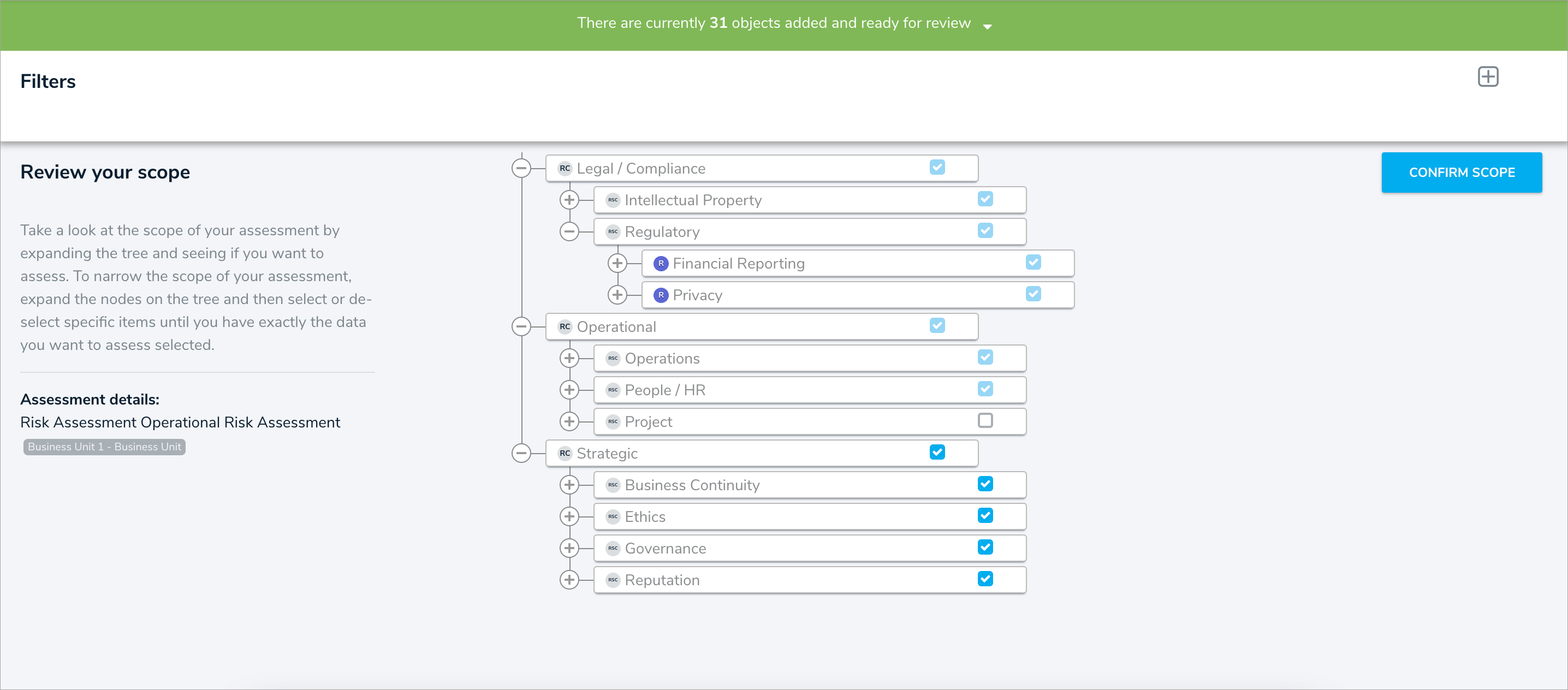 - You can now rescope launched assessments to include new objects with the click of a button.
