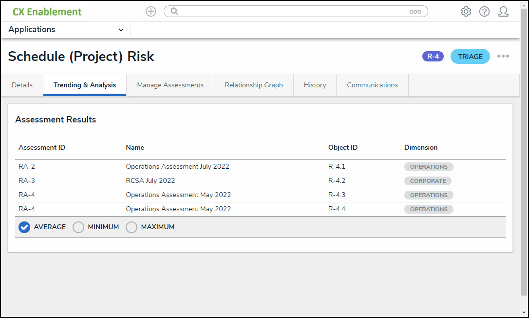 - The Assessment Results and Update Assessments tables on the Assessments Tab are being moved to their separate tabs called Trending and Analysis (Assessments Results table) and Manage Assessments (Update Assessments table). By default, both the Trending and Analysis and the Update Assessment tabs will be deactivated. However, if you already have an active Assessments tab, then the Trending and Analysis tab will be enabled.