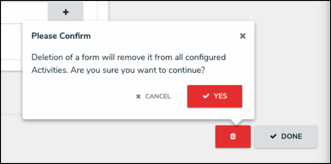 - When creating a Form, the List Item Confirmation buttons (Yes) will be highlighted in red, indicating the severity of the action.
