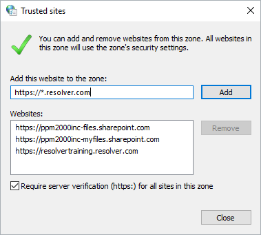 Enter https://*.resolver.com in the Add this website to the zone field.