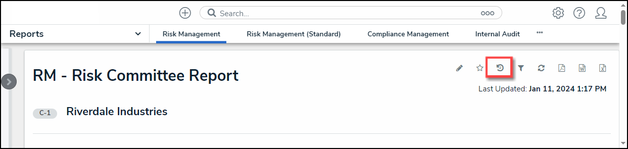 Note: If Point in Time Reporting has not been enabled for this report, the Historical Data icon will not be visible. |