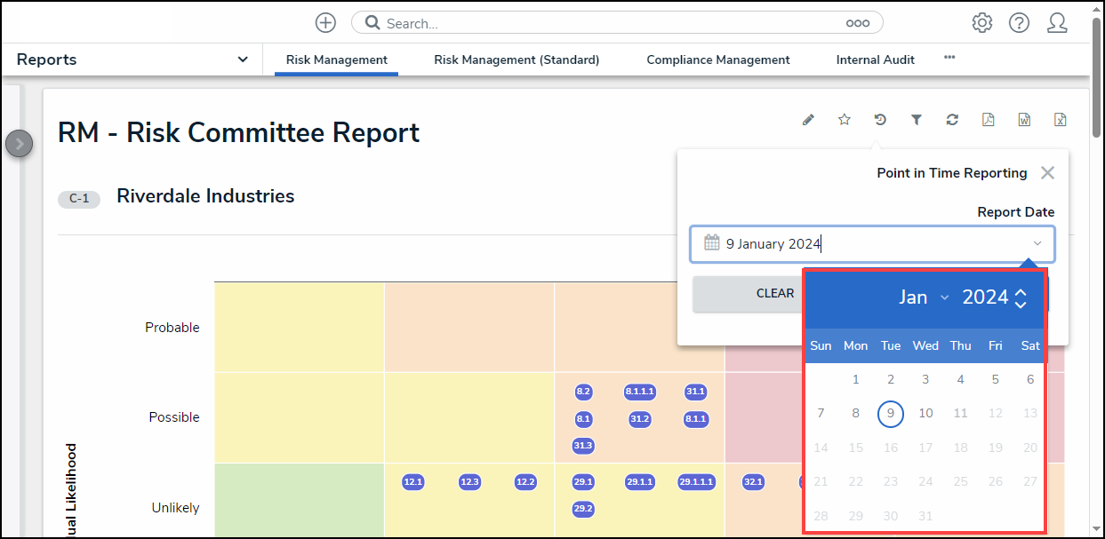 - From the Point in Time Reporting screen, click the Report Date field and select a report date from the Calendar pop-up.