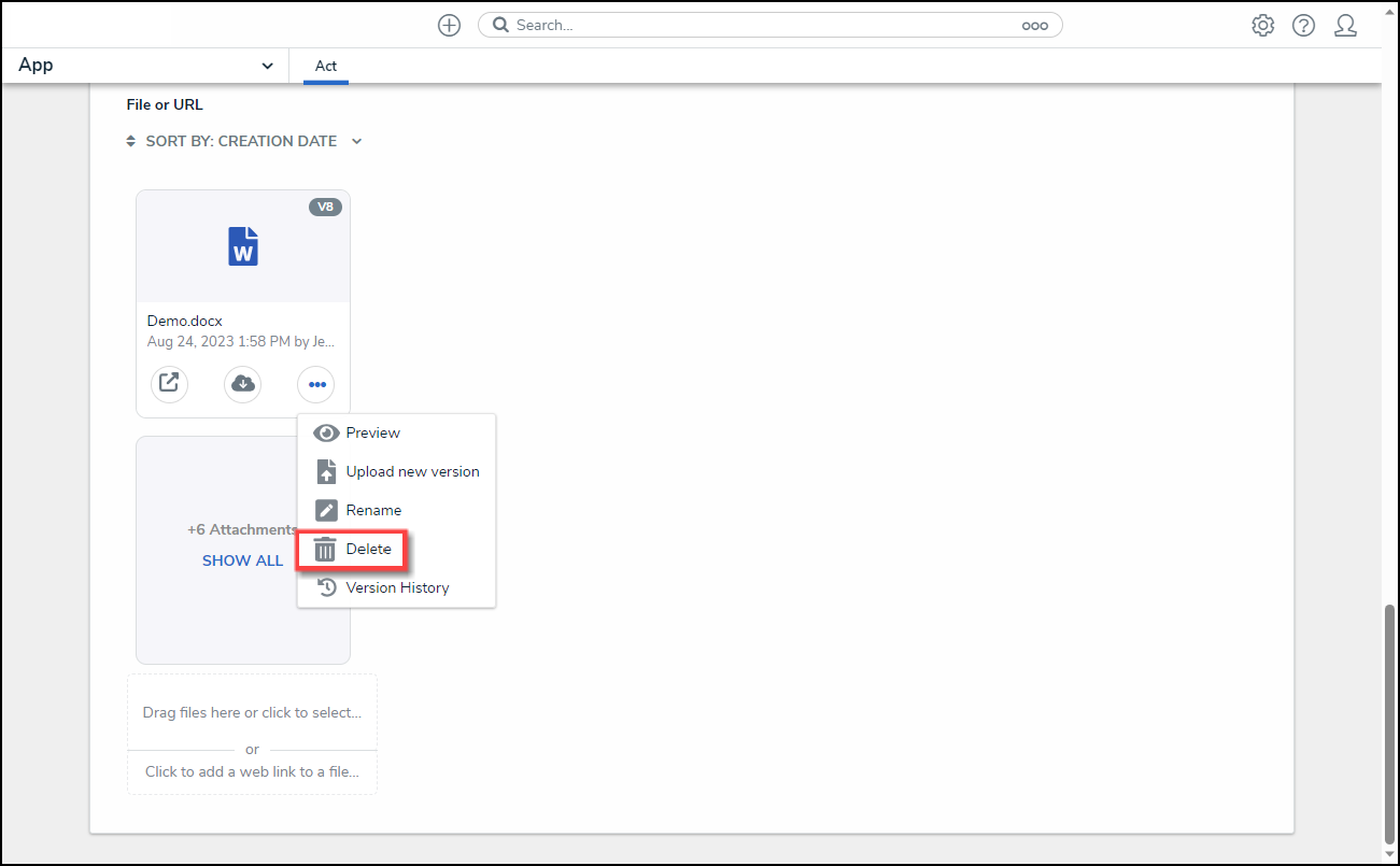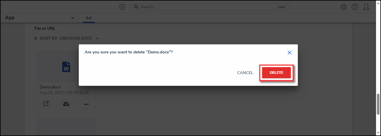 - From the Confirmation pop-up, click the Delete button to remove the file from the form.