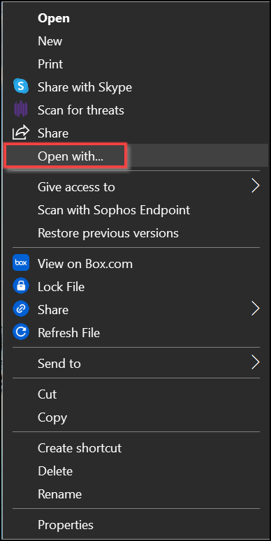 Tip: If Excel is not your default app, move your cursor over the .csv file and click the Right mouse button. Select Open with from the pop-up menu. Select or search and select Excel. |
