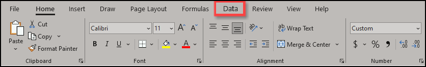 - Select Data from the Toolbar.