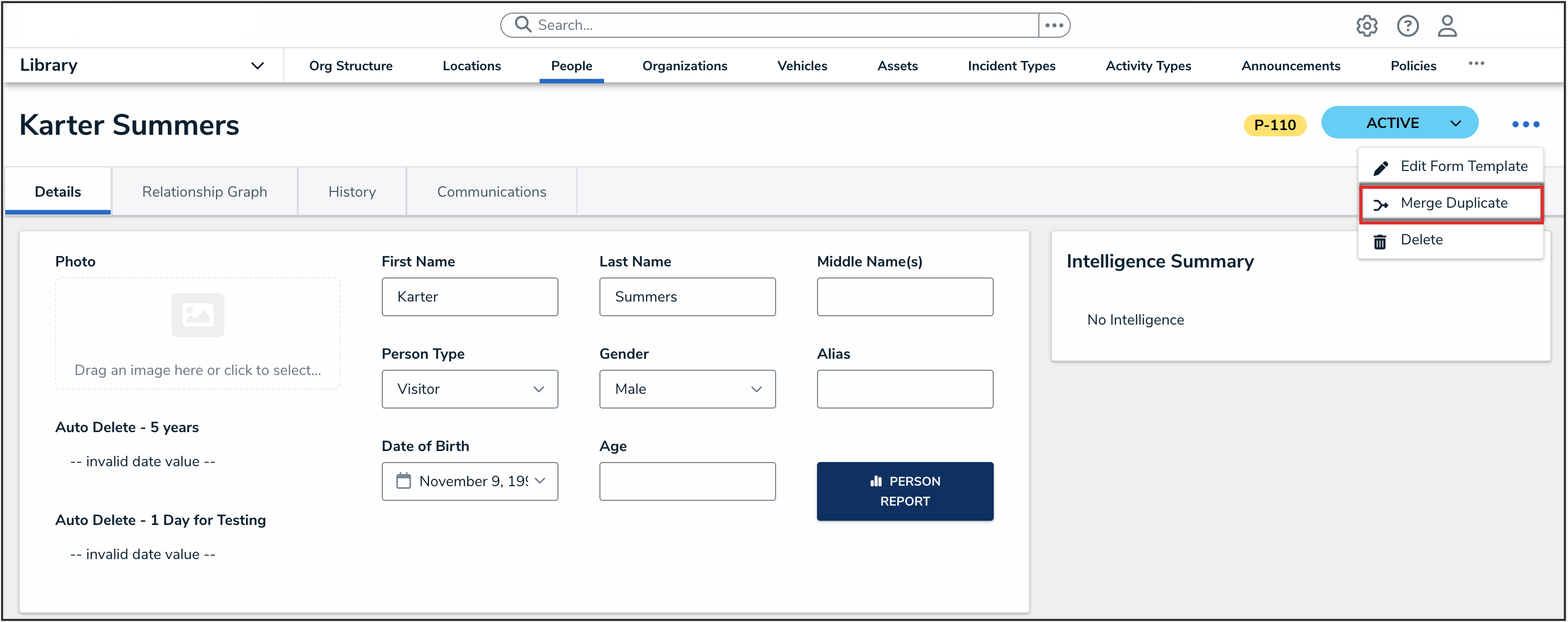 Note: For this example, we will show how to merge two People objects in Resolver. |