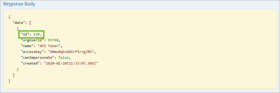 - Copy the id from the Response Body to your clipboard. This is the internal ID for the API key.