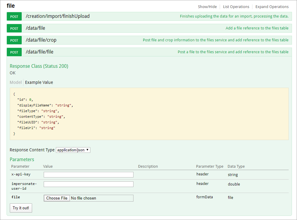 - Any call can be made using an API key while impersonating another user; however, only three endpoints in the Swagger user interface support this: