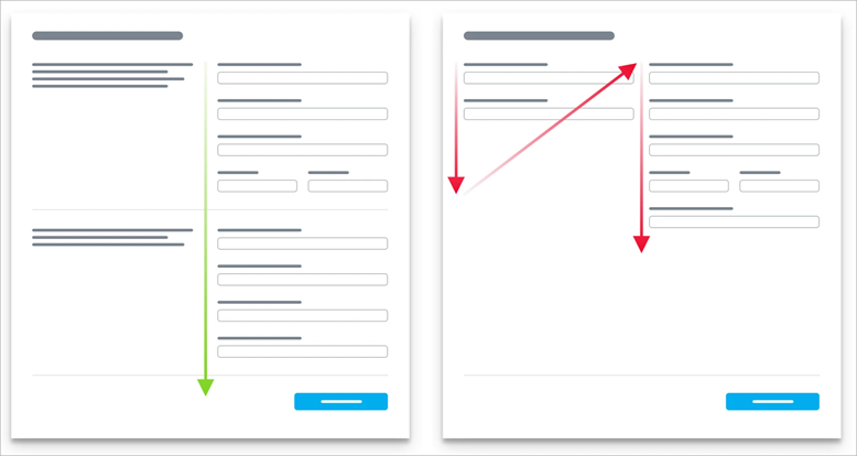 Aim to create your forms with only one column. When a form has multiple columns, it forces the user to scan the content in a Z pattern, making it harder and more time-consuming for the user to process and complete.