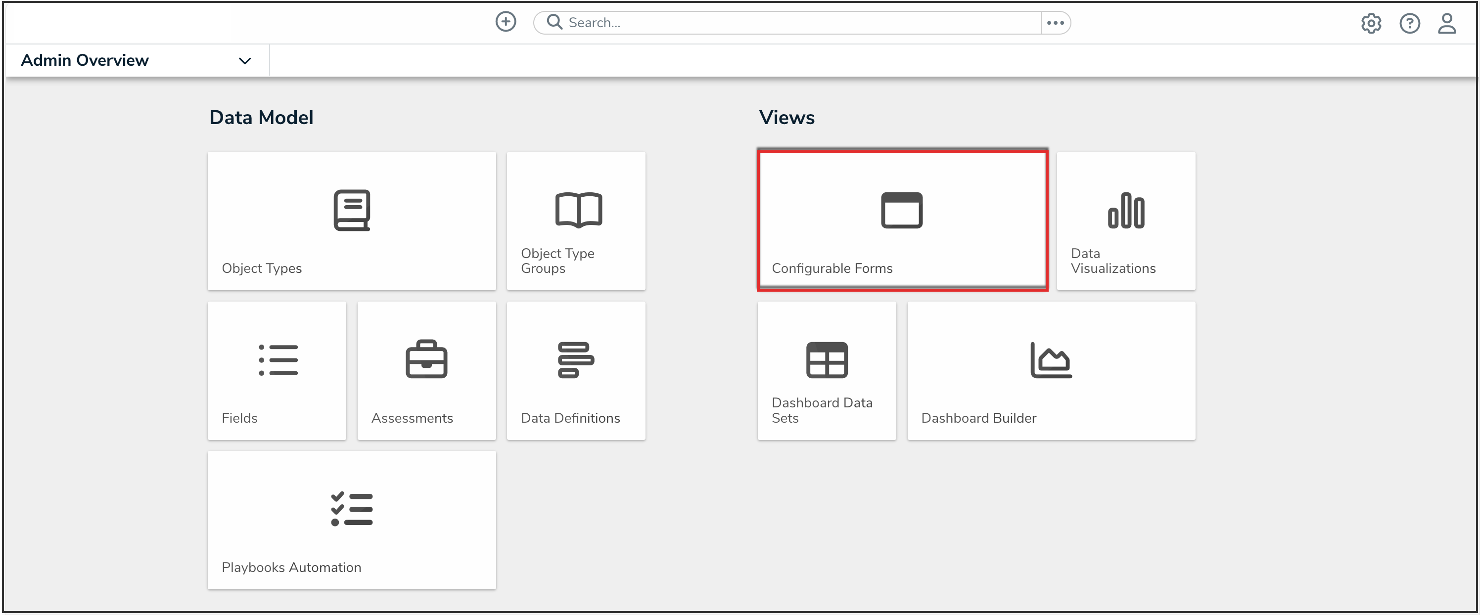 - From the Admin Overview screen, click the Configurable Forms tile under the Views section.