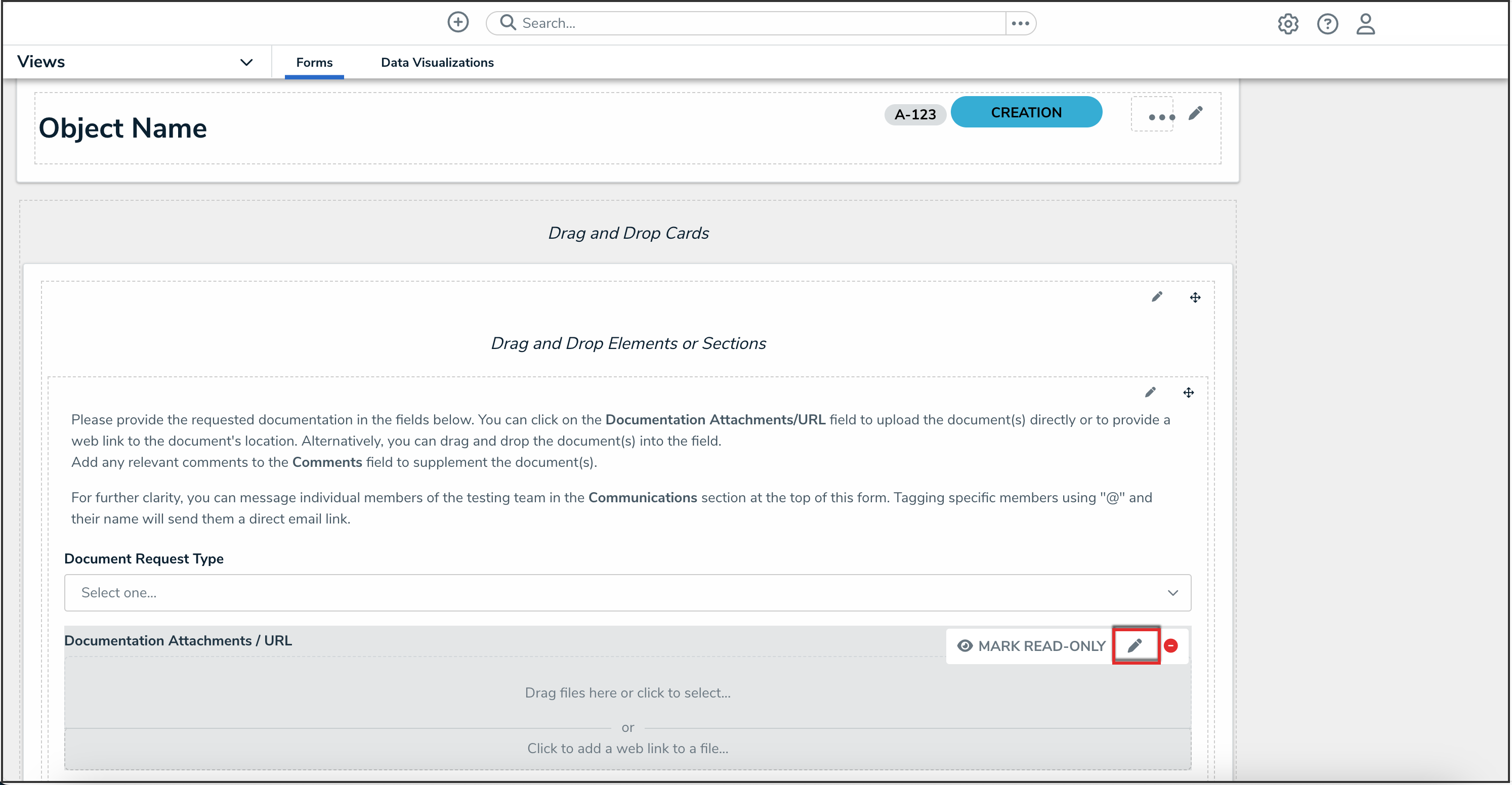 - Click the Edit icon on the attachment field of a configurable form.