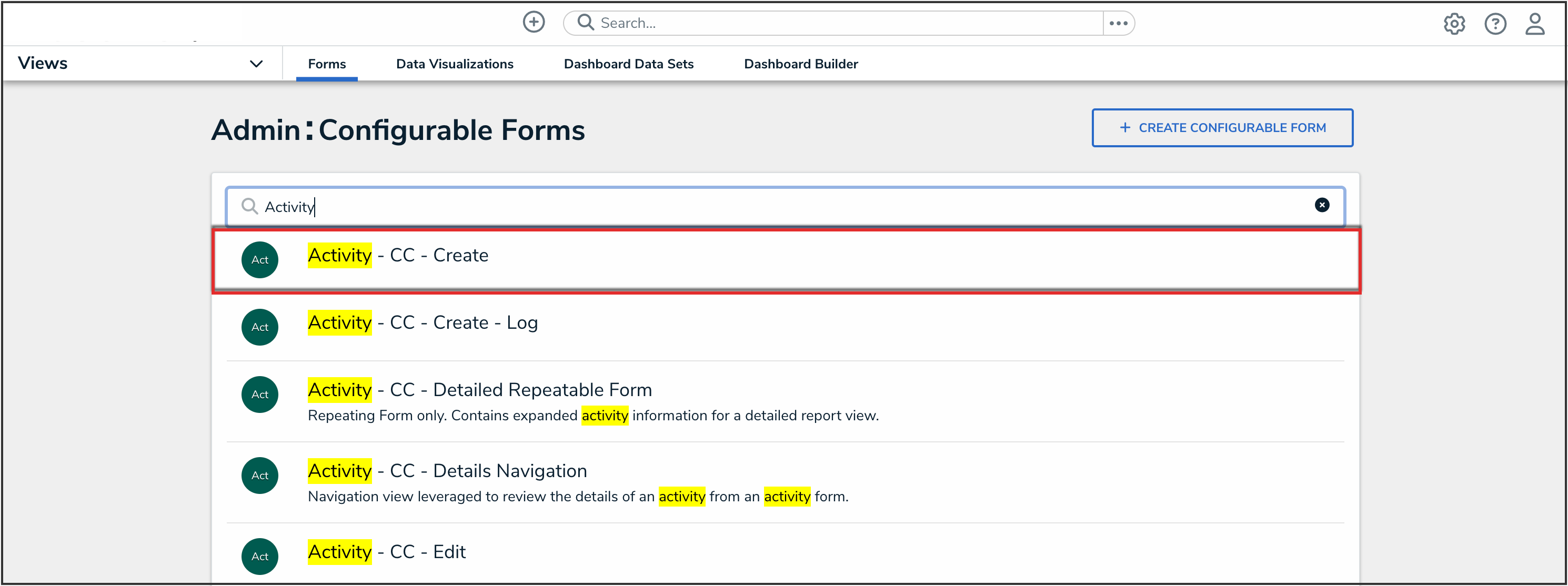 - Enter a form name in the Search field to narrow the search results.
