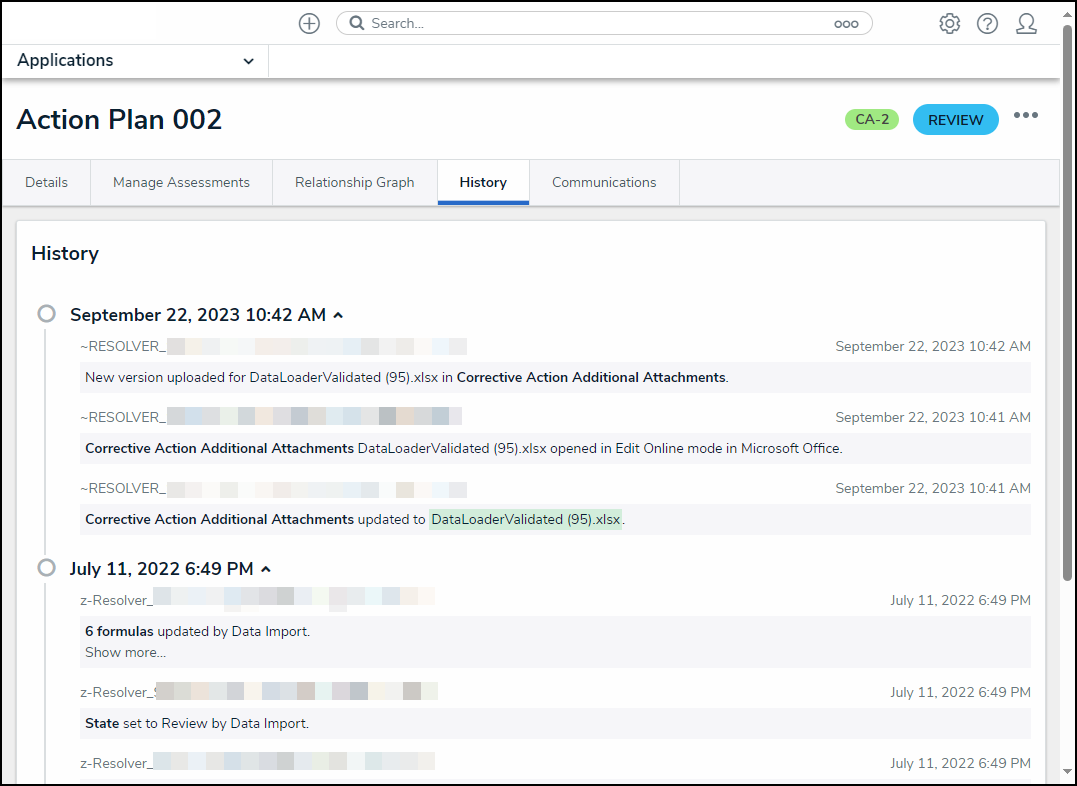 Users can view an Object's Data Audit Trail (Change Log) through the History tab on Forms. The History tab uses a Timeline UI Format; timelines sort Object History events by day.