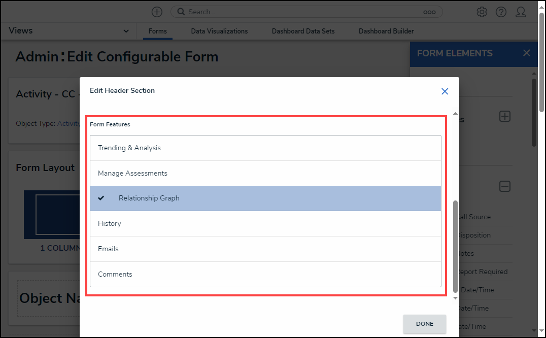 - From the Edit Header Section pop-up, scroll to the Form Features section.