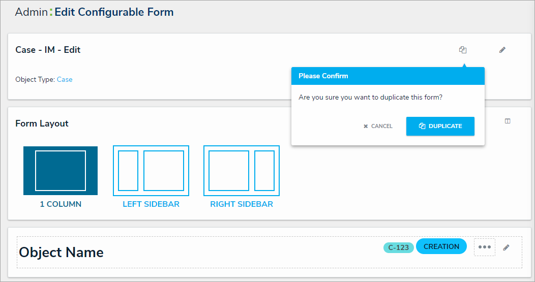 - Click Duplicate to confirm and to display the Edit Configurable Form page for the duplicate.
