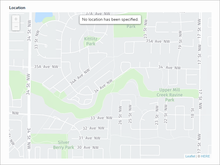 - The address bar is hidden on objects with no location data. If the map is configured to display, a greyed-out map with a No location has been specified message is shown.