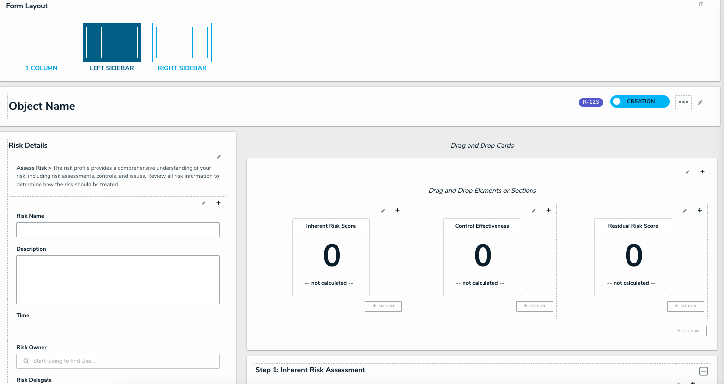 A form card refers to a primary group of content within a standard form – either in the Sidebar Card, or within the main form area. Administrators can add multiple form cards to the main form area, to help to clearly separate form content. Then you may also add form sections, which function as secondary content groups within unique form cards.