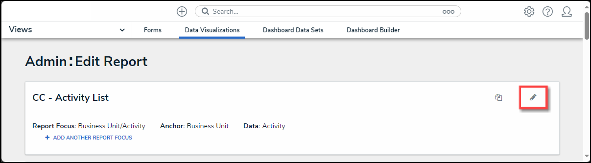 - From the Admin: Edit Report screen, click on the Edit icon.