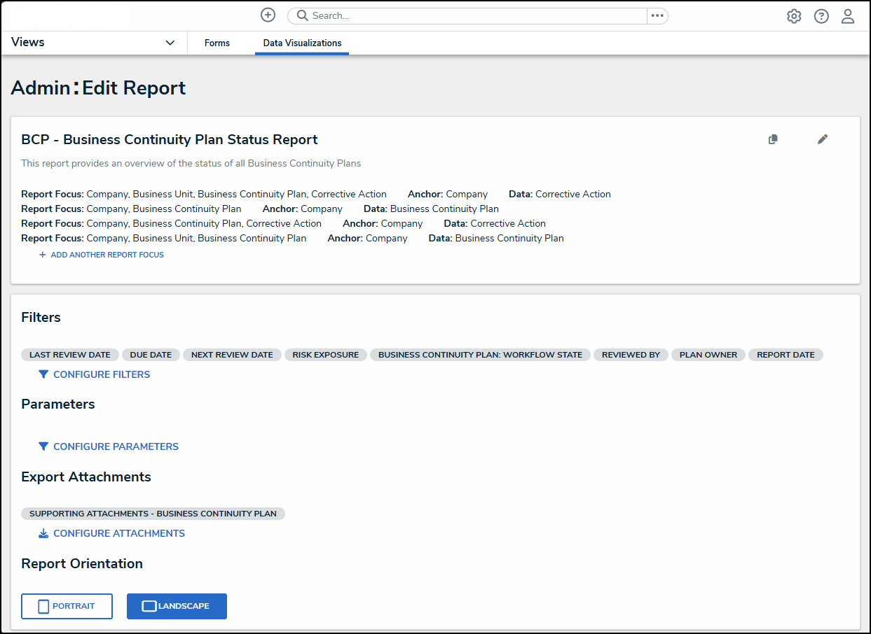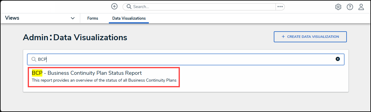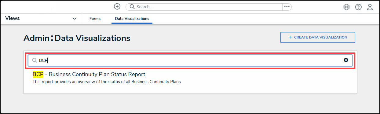 - From the Admin: Data Visualizations screen, enter a Report Name in the Search field.