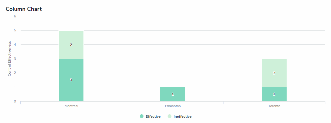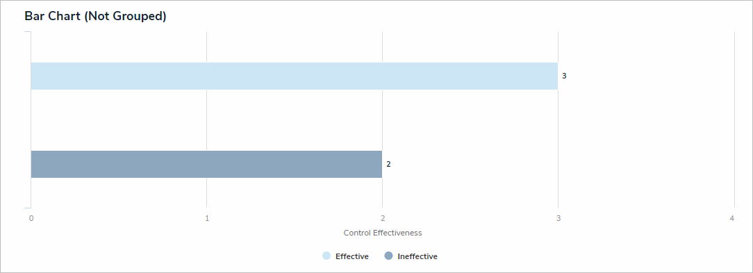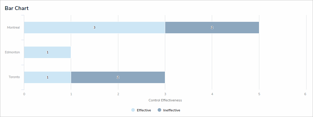 When a chart isn't grouped, the number of times the selected field, formula, or state appears on a single object is totaled on the chart. For example, in the screenshots below, the data has not been grouped, and the charts are therefore displaying the number of times the Effective and Ineffective select list options appear on the Incident objects at the Montreal location.