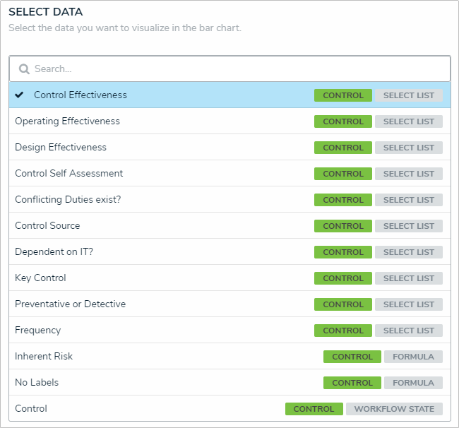 - From the Select Data section, select the data (select list field, formula, or state) that you wish to display in the chart.