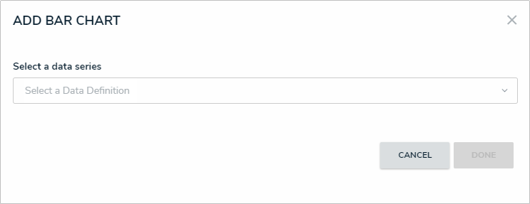 Configurations for bar and column charts are identical. To change an existing bar chart to a column chart or vice versa, open the Edit Chart palette and select Bar or Column in the Configure Display section. - Select a data series from the Select a data series dropdown menu, then click Done. The data definition selected here will determine which object types you can choose to display in the chart.