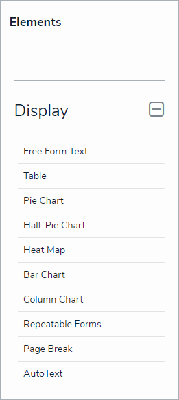 - Once you're done adding elements and configuring your report, you must add it to a report view to make it available to end-users. See the Views Overview and Create a Report View articles for more information.