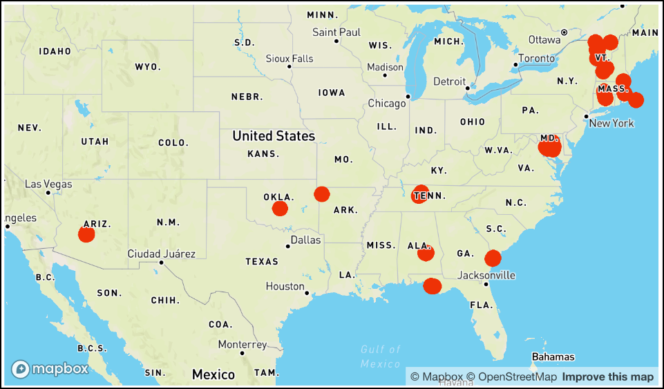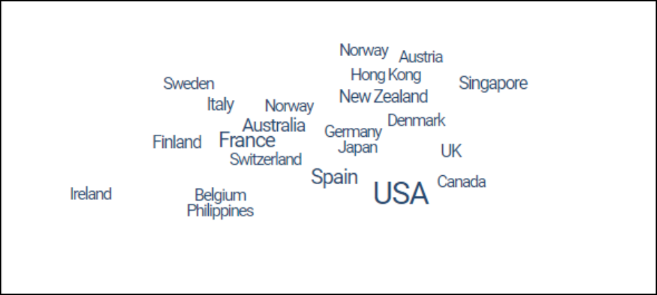 - Dot Map: Dot Maps display the actual geolocation of each record in the dataset as a dot on a map.