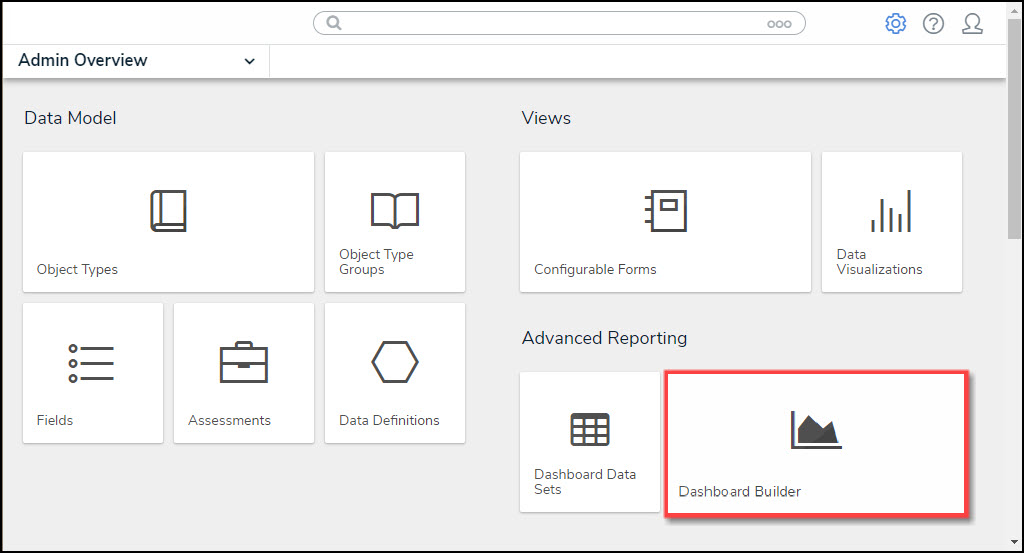 - From the Admin Overview screen, click on the Dashboard Builder tile under the Advanced Reporting section.