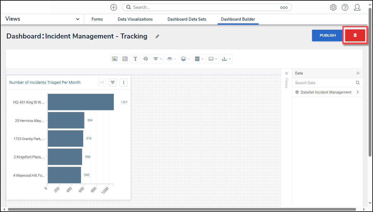 - From the Dashboard: Incident Management - Tracking screen, select the DeleteĀ button.