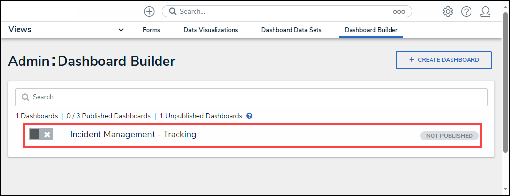 Administrators can publish a Dashboard when it is complete to allow other user access to the charts/reports within the Dashboard. Dashboards must be published to embed a Dashboard in a system Activity so users can view them.
