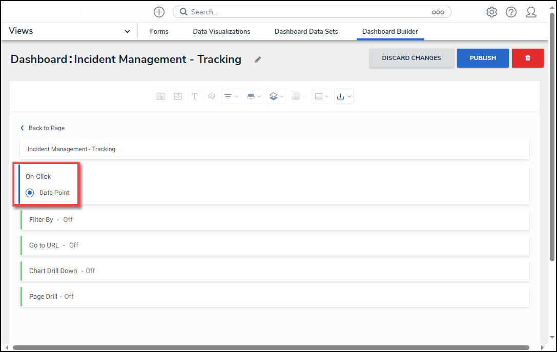 - Data Point: The Data Point option creates a Page Action trigger when a Data Point is selected from a Chart.
