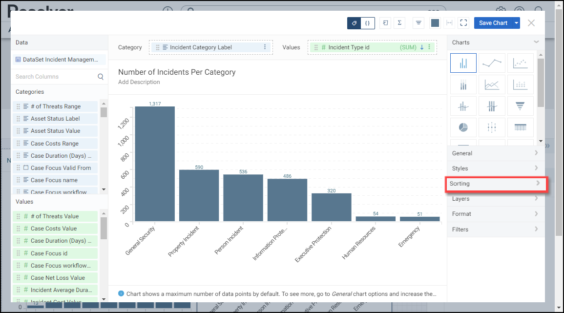 The user account you use to log into Resolver must have Administrator permission or Data Management to sort a Chart.