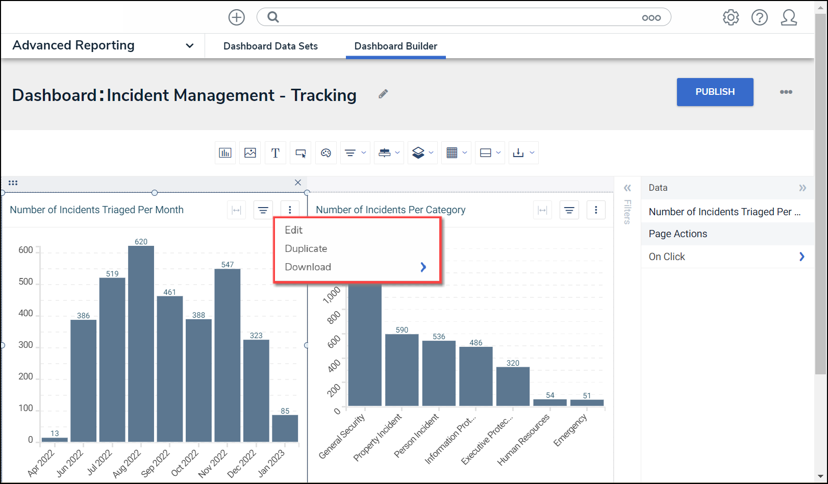 - From the Dashboard Builder screen, click on a Dashboard Name.