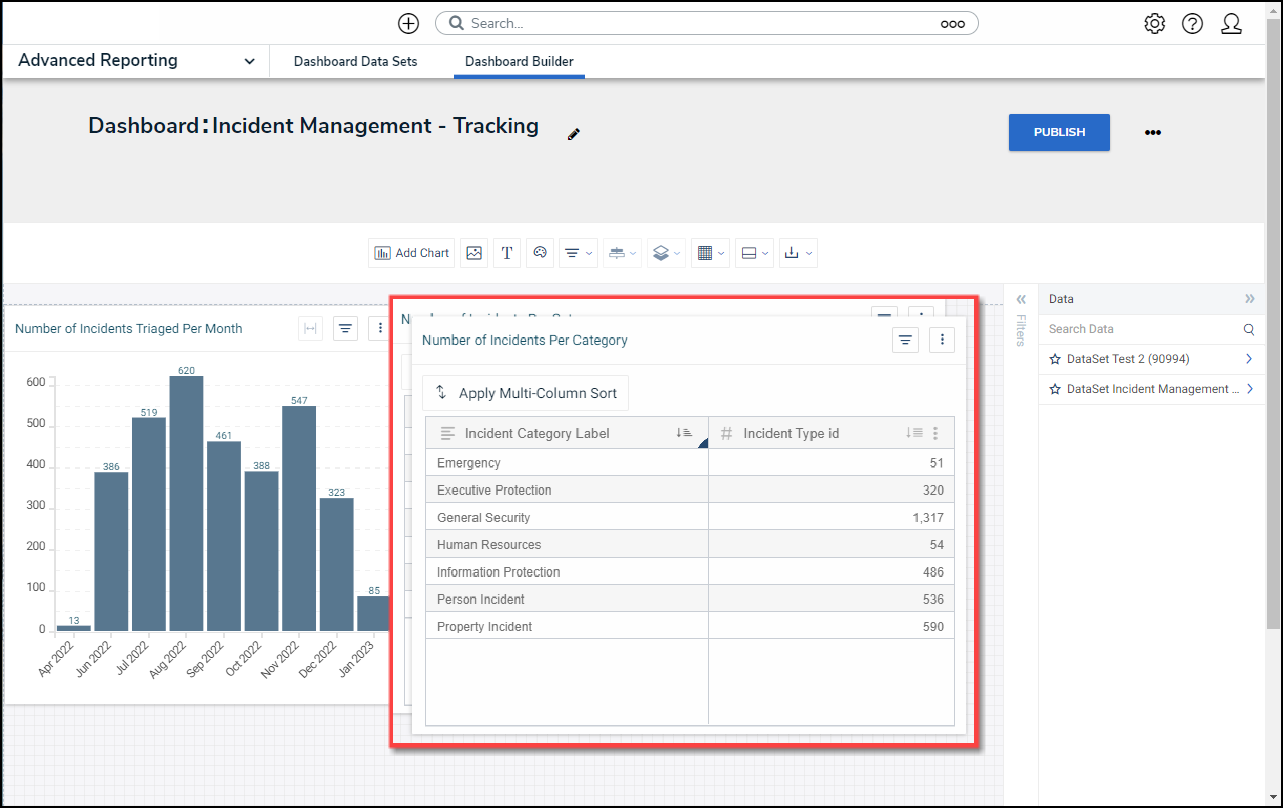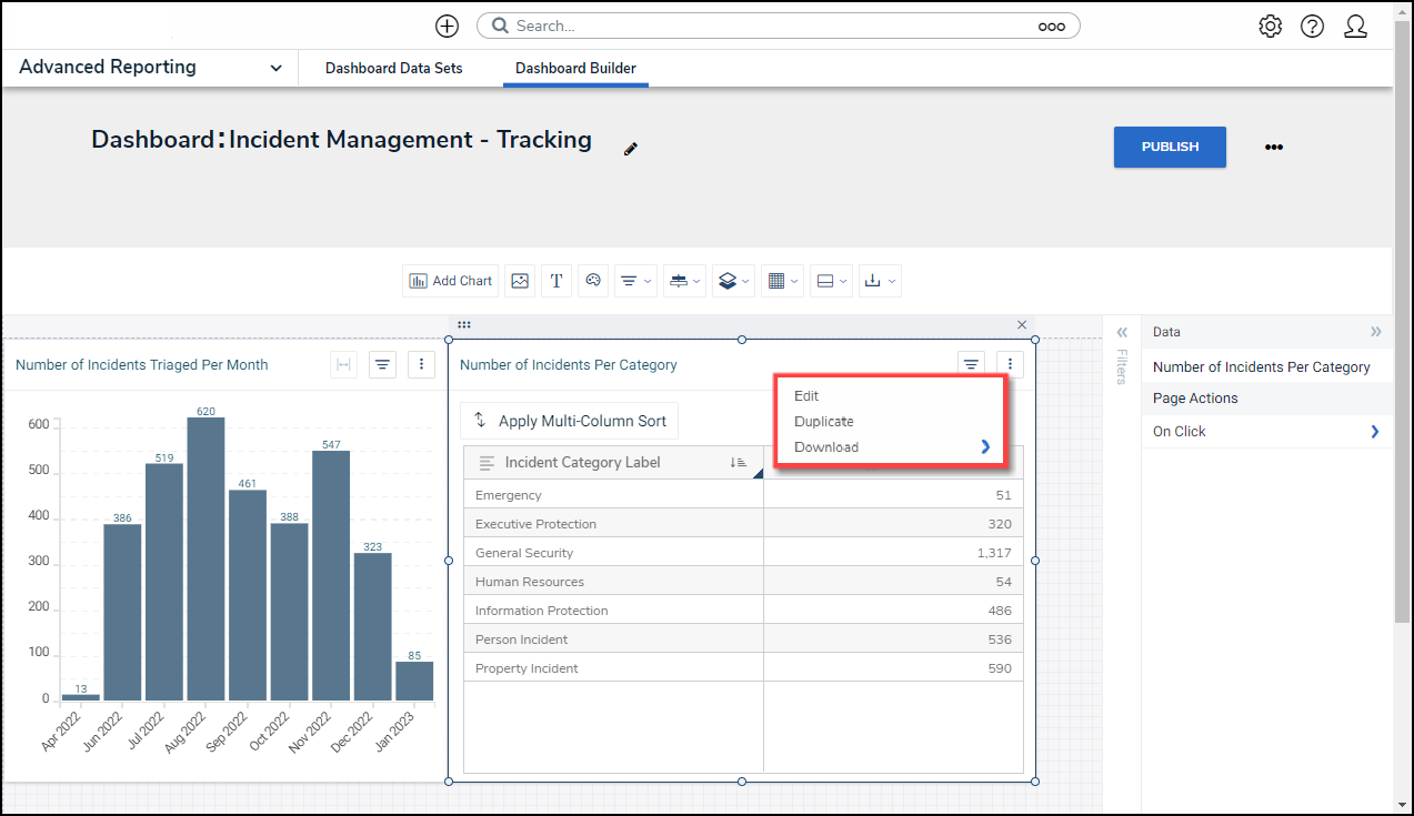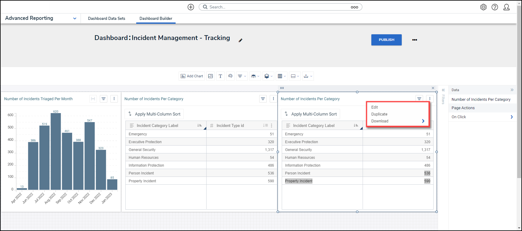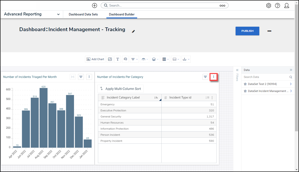- From the Dashboard Builder screen, click a Dashboard Name.