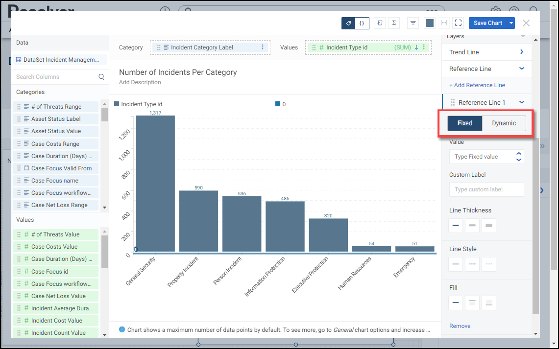 Fixed: A Fixed Reference Line allows a user to enter a fixed value setting the Reference Line on the Chart at the specific value.