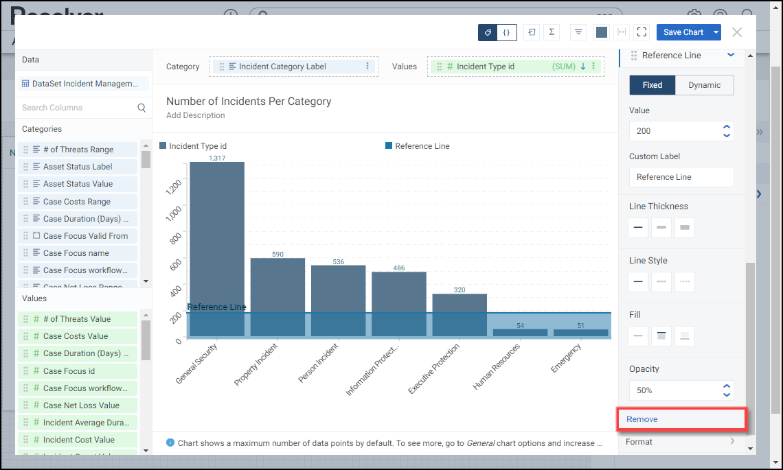 - Click the Remove link to delete the Reference Line from the Chart.