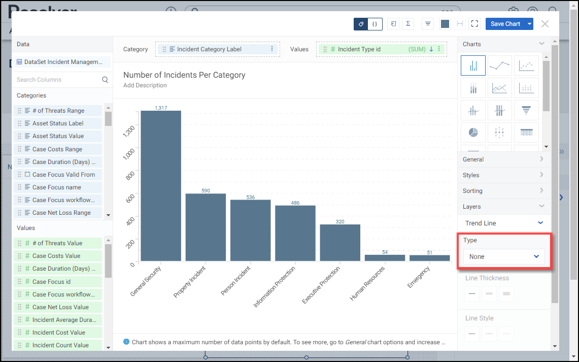 - Click the Type dropdown and select a Trend Line Type: