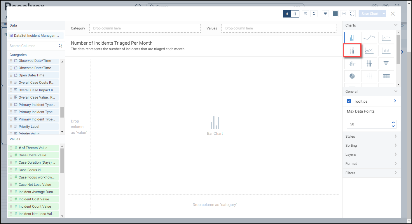 - The Category data will populate the Chart. Bar Chart is the system default for Chart types.