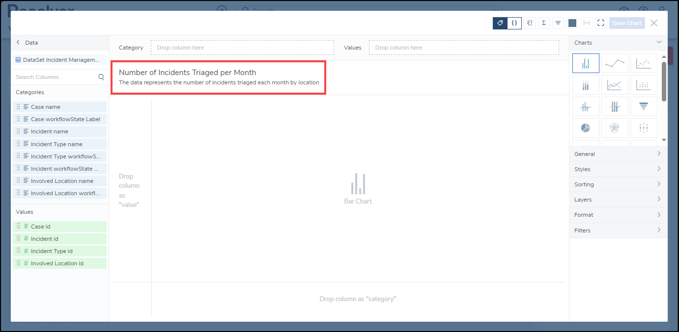 - The Category data will populate the Chart. Bar Chart is the system default for Chart types.