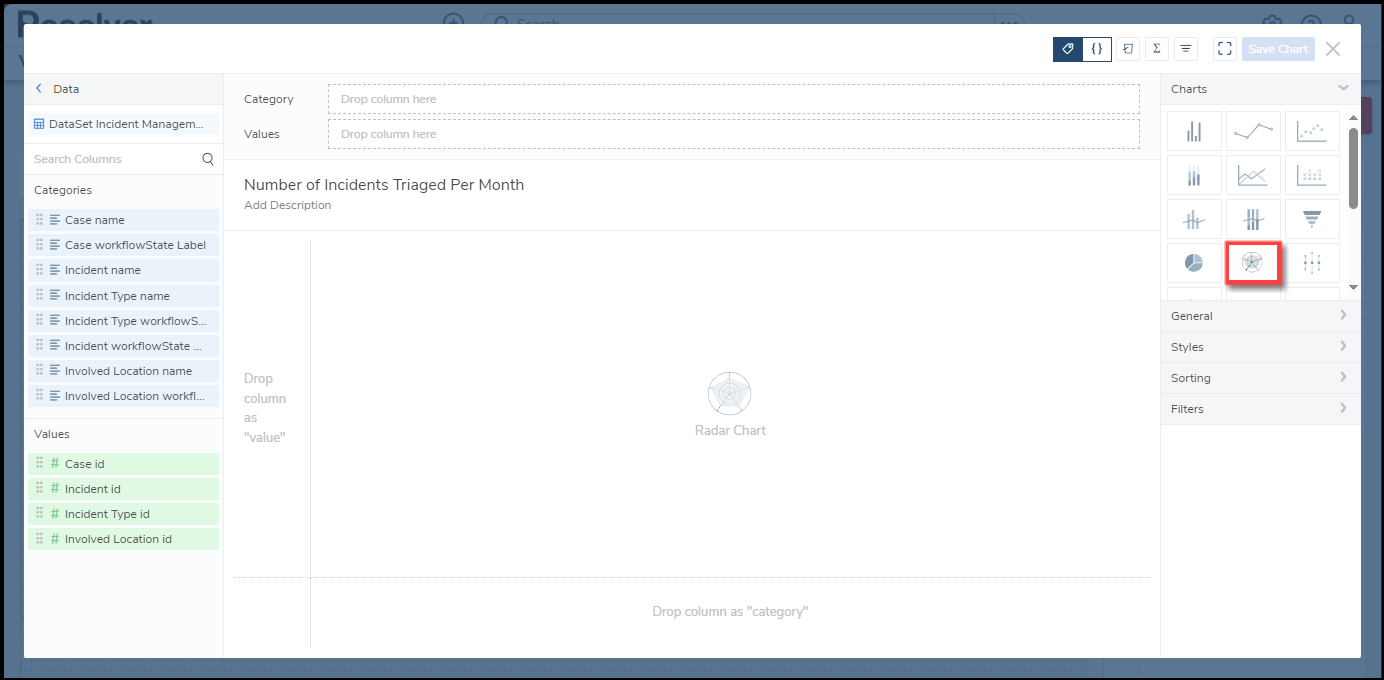 - Select the Radar tile from the Charts panel.