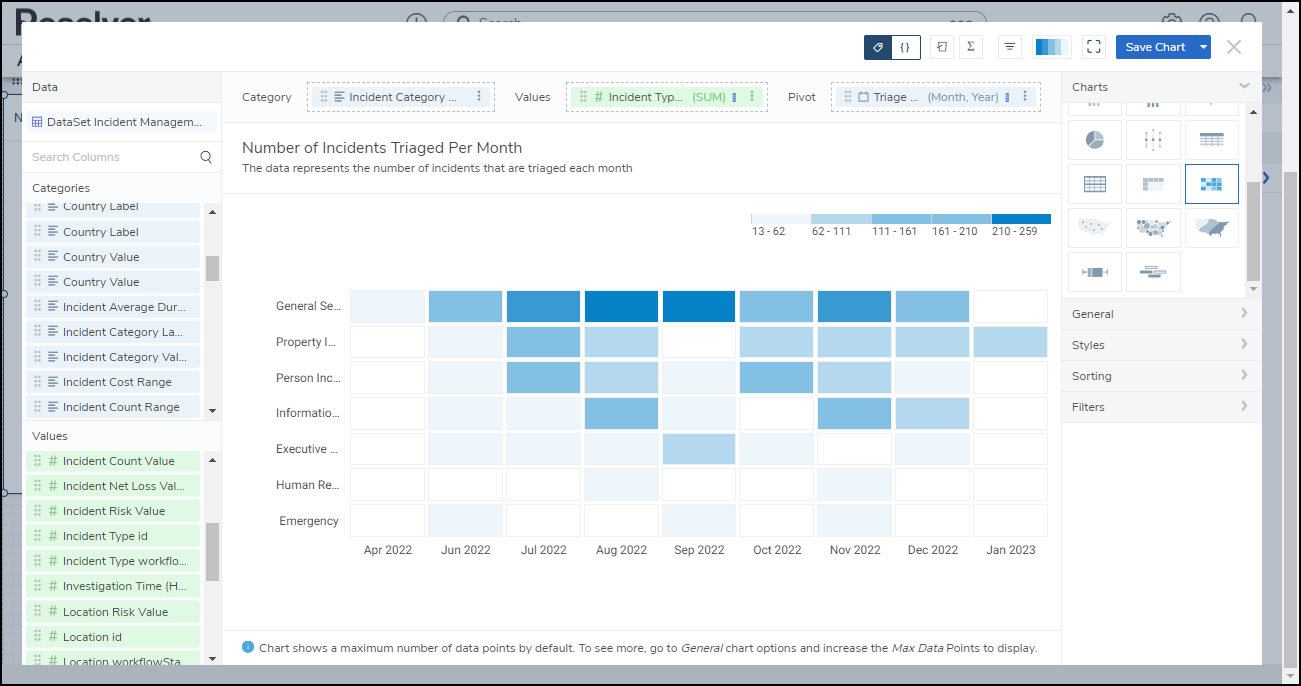 Resolver’s Dashboard Builder allows Administrators to build custom Dashboards using the Dashboard Data Sets published within their Org.