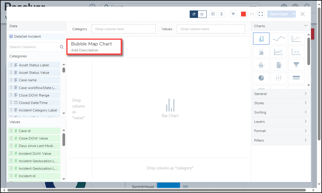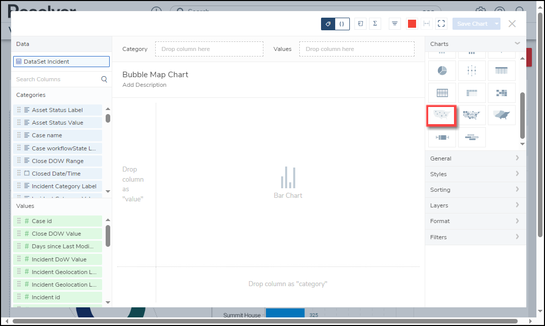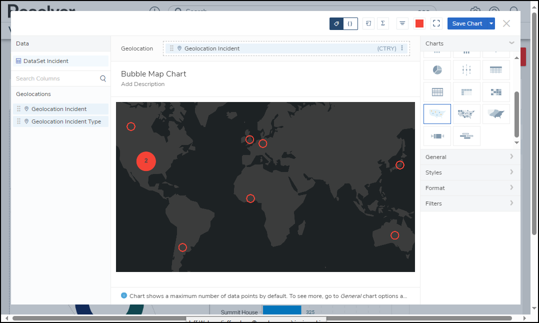 For illustration purposes, we will use the Dot Map Chart Type in the instructions below. However, you can also apply these instructions to Bubble Maps and Choropleth Map Chart Types.