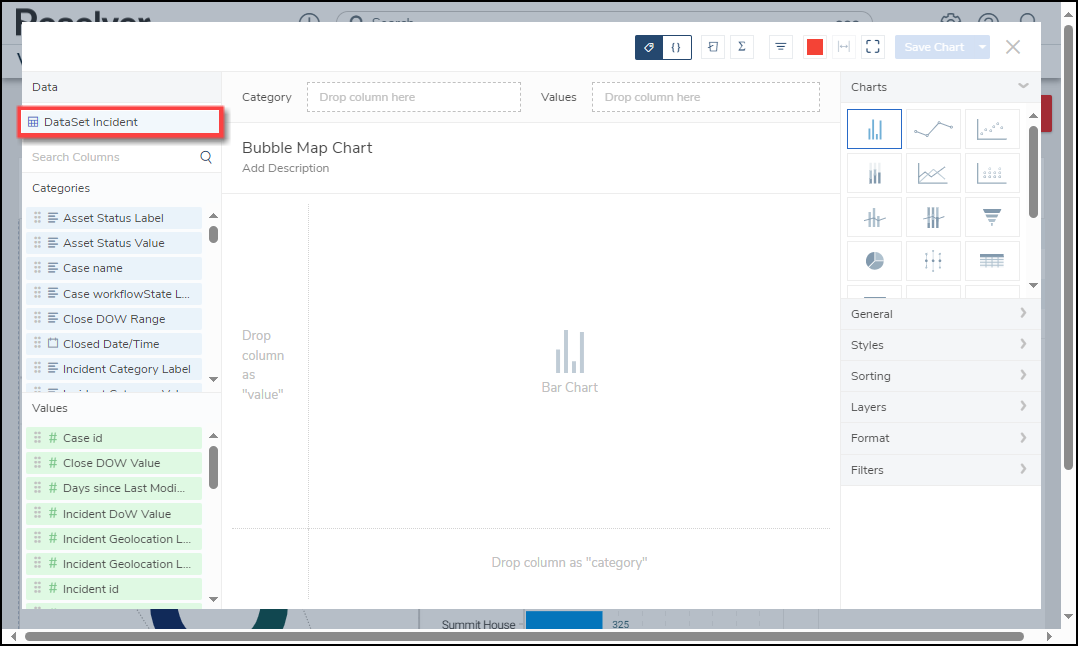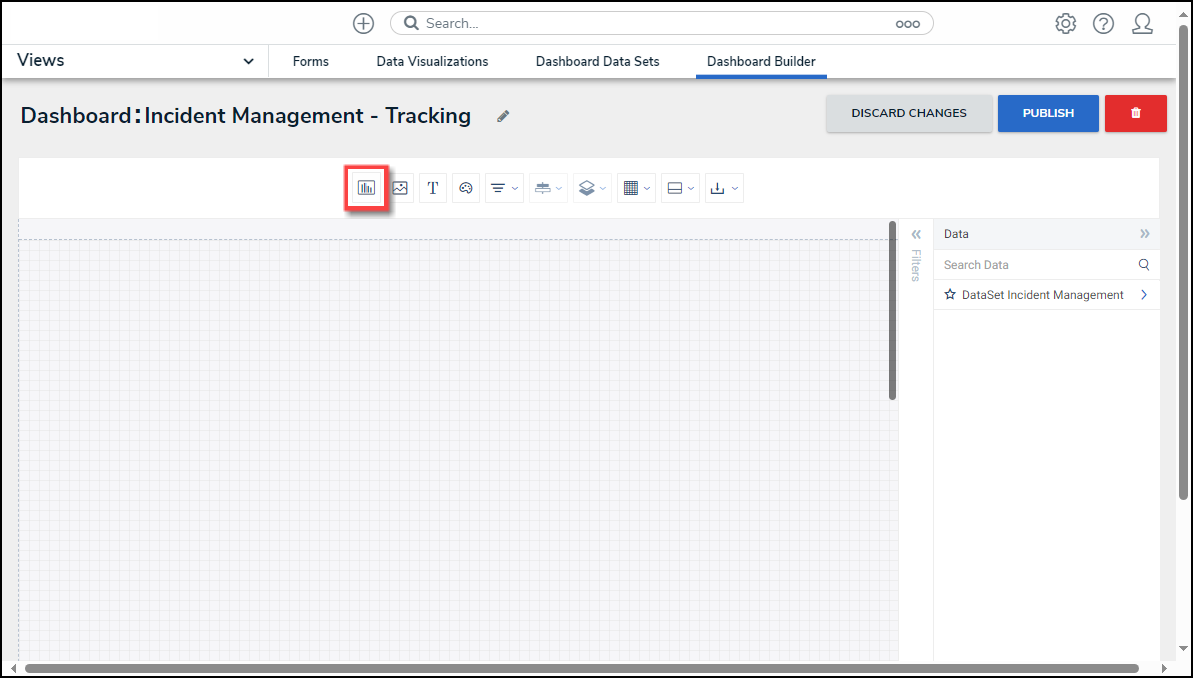 - From the Chart screen, click on a Dashboard Data Set from the Data Panel.