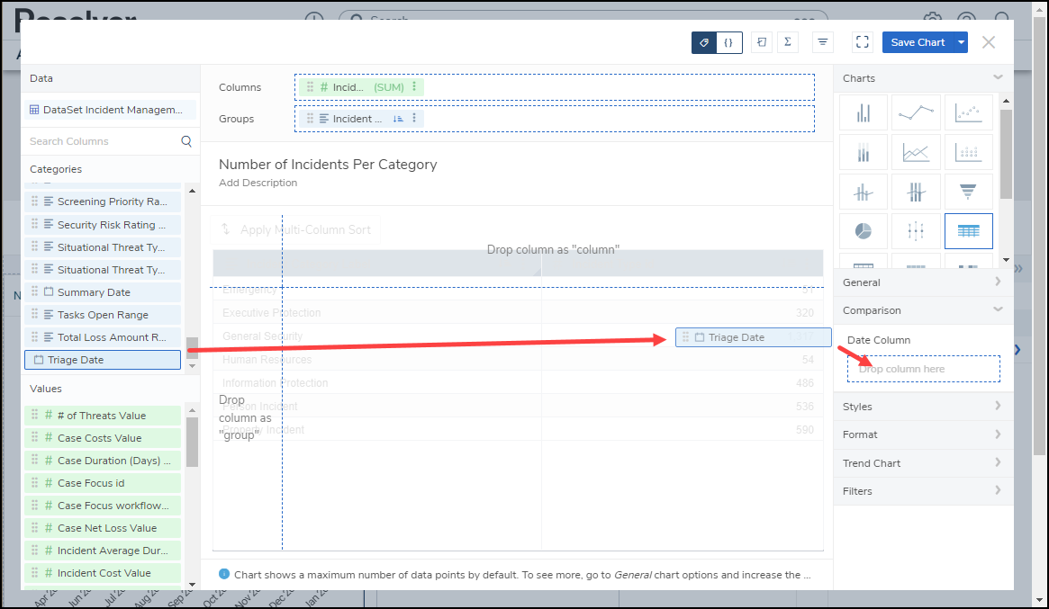 - Drag and drop a Category from the Categories panel into the Date Column field.