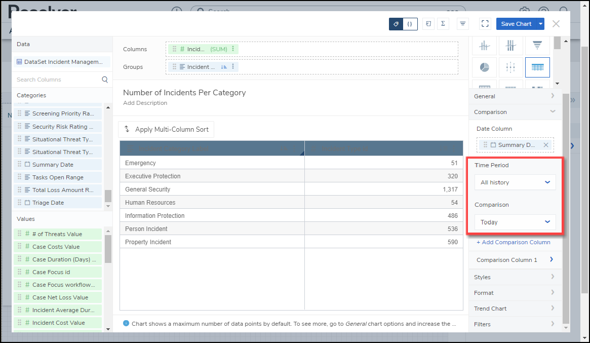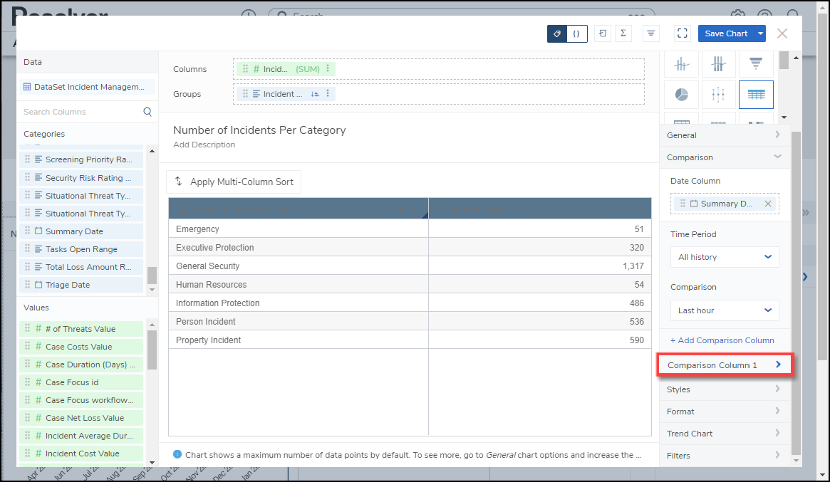 - Remove: Select the Remove link to delete the Comparison Column from the Chart.